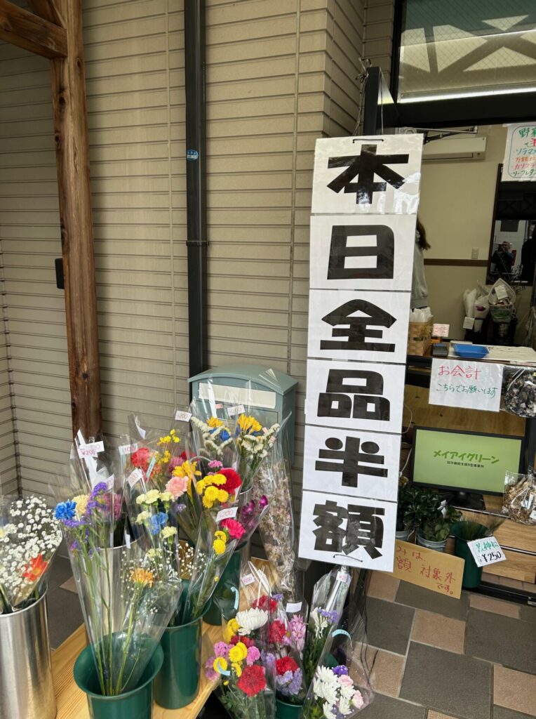 今日は花の特売日です。 2026年4月13日2026年4月15日 ブログ 全品半額で販売しています あいにくの雨でお客様のご来店はいつもより少ないです ゆっくり選んで頂けますので、お近くの方はどうぞおいで下さい